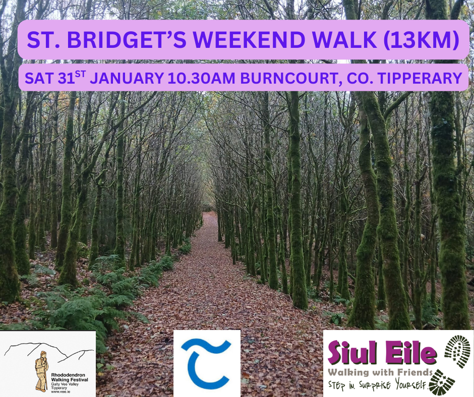 Join us on our annual St. Bridget’s Weekend Walk on Saturday 31st January and immerse yourself in the hidden beauty of Glengarra Woods. This guided walk explores the quieter, more atmospheric side of Glengarra Woods, combining well known paths with hidden woodland trails that many visitors never get to experience. This route reveals the true character of Glengarra, offering a rich mix of ancient woodland, managed forestry, cascading rivers, and wild, natural spaces with glorious views of the entire Galty Vee Valley between the Galty and Knockmealdown mountains.
